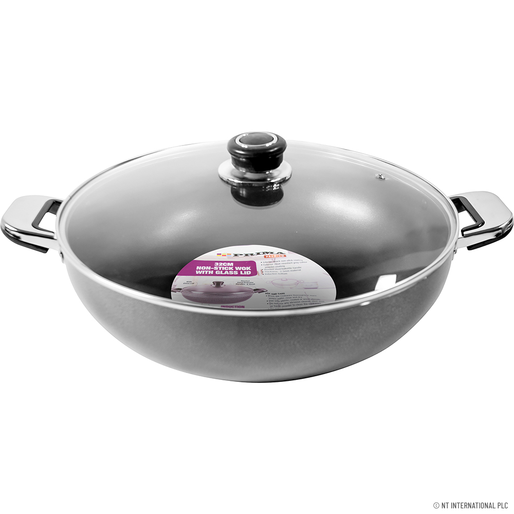 32cm N/S Wok - Glass Lid - Double Handle
