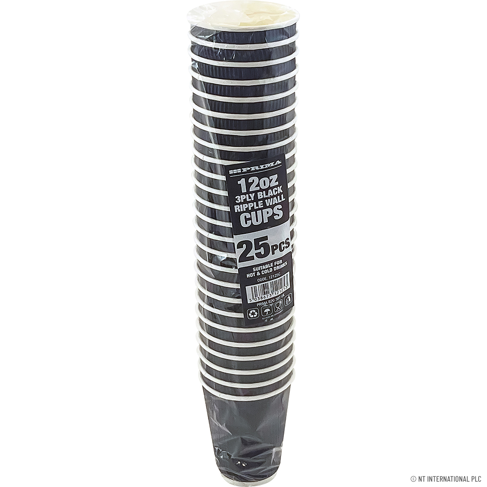25PC - 12Oz Ripple Wall Cup (Black)