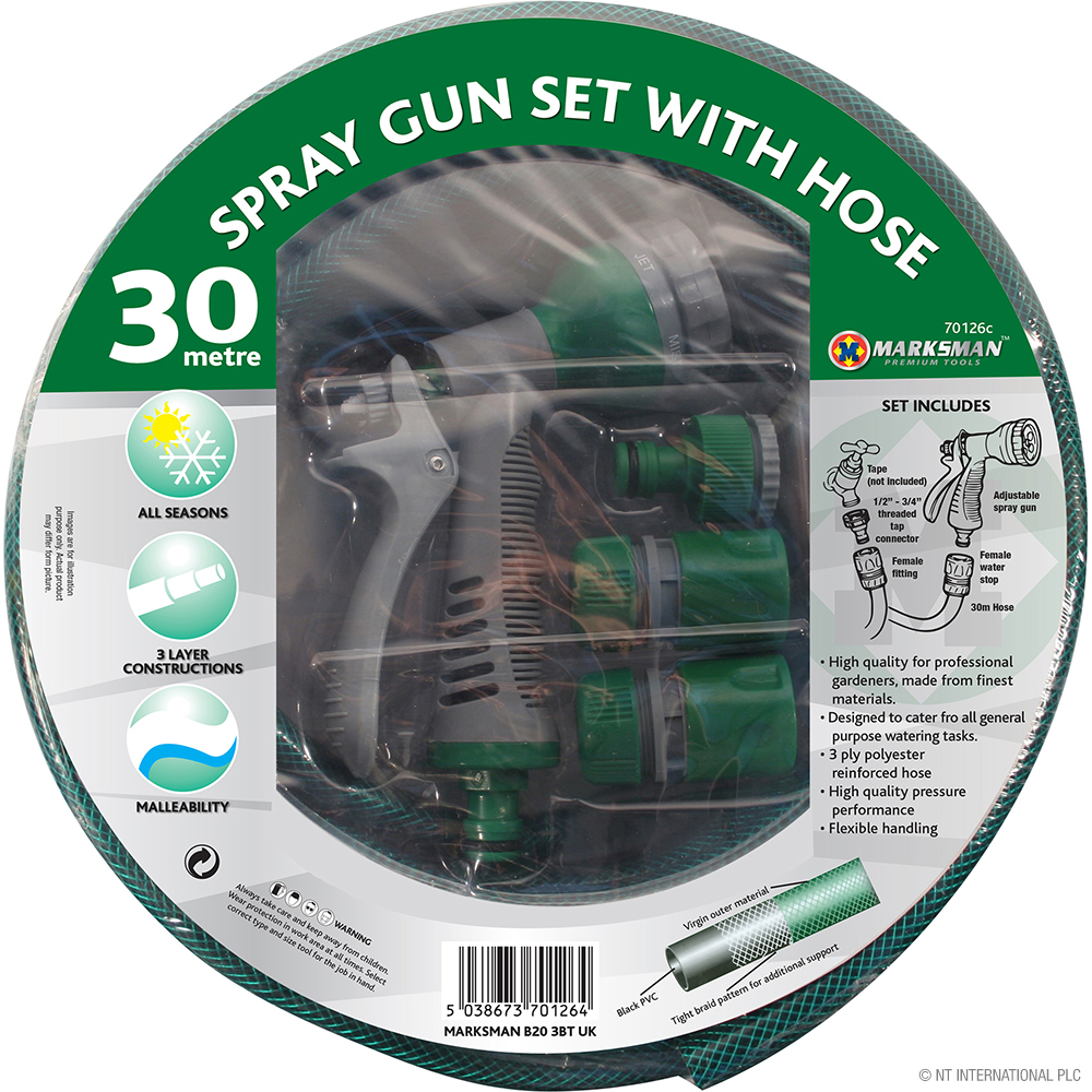 30m PVC Hose Pipe + Spray Gun Set - Green