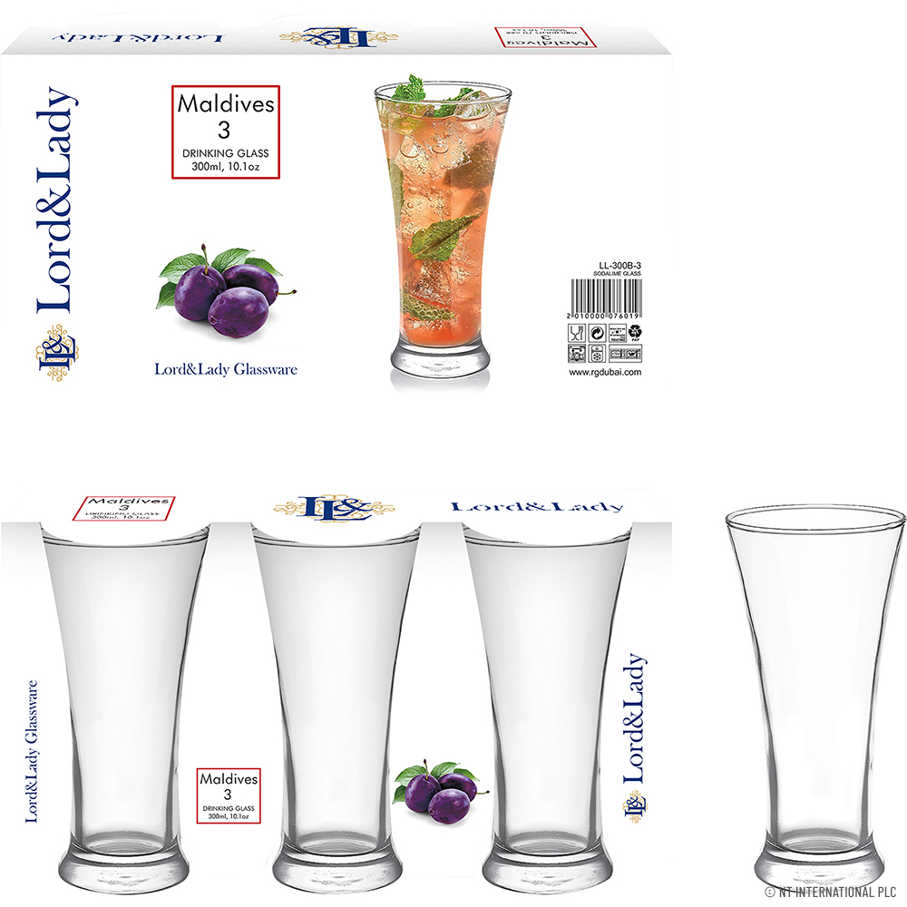 3pc Glass Tumbler - Maldives 300ml TNV011-3