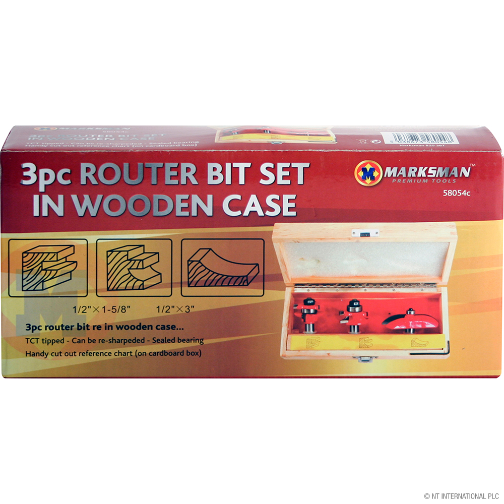 3pc Router Bit Set in Wooden Case