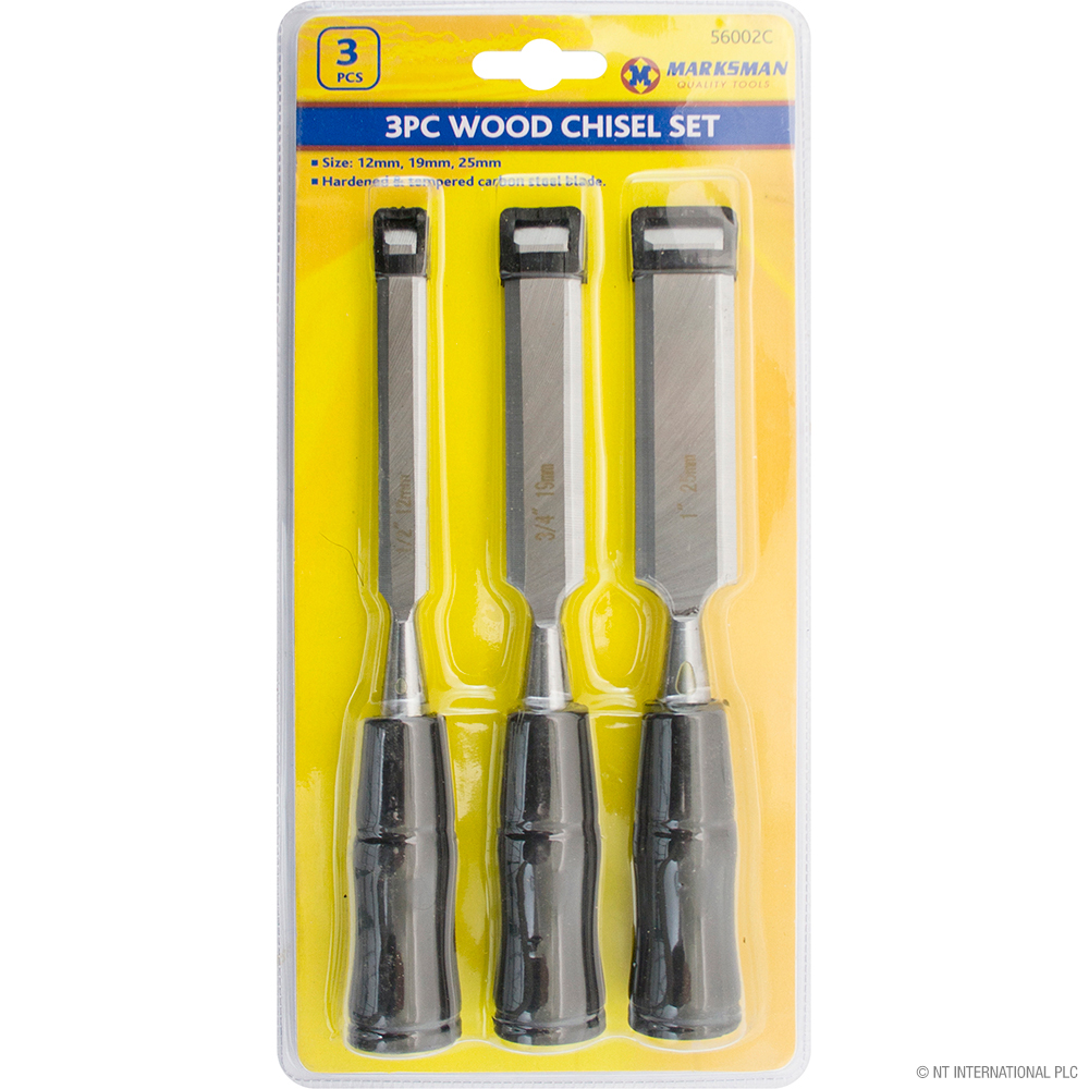 3pc Wood Chisel Set - 12/19/25mm - Black