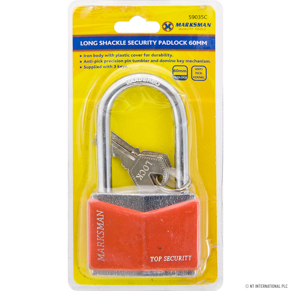60mm Long Shackle Security Padlock - Red