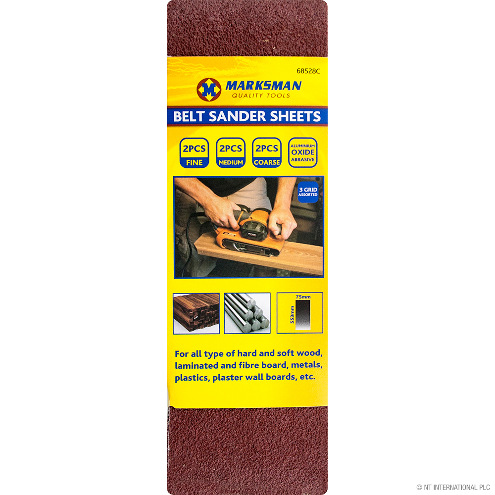 6pc 75 x 553mm Asst Belt Sander Sheets