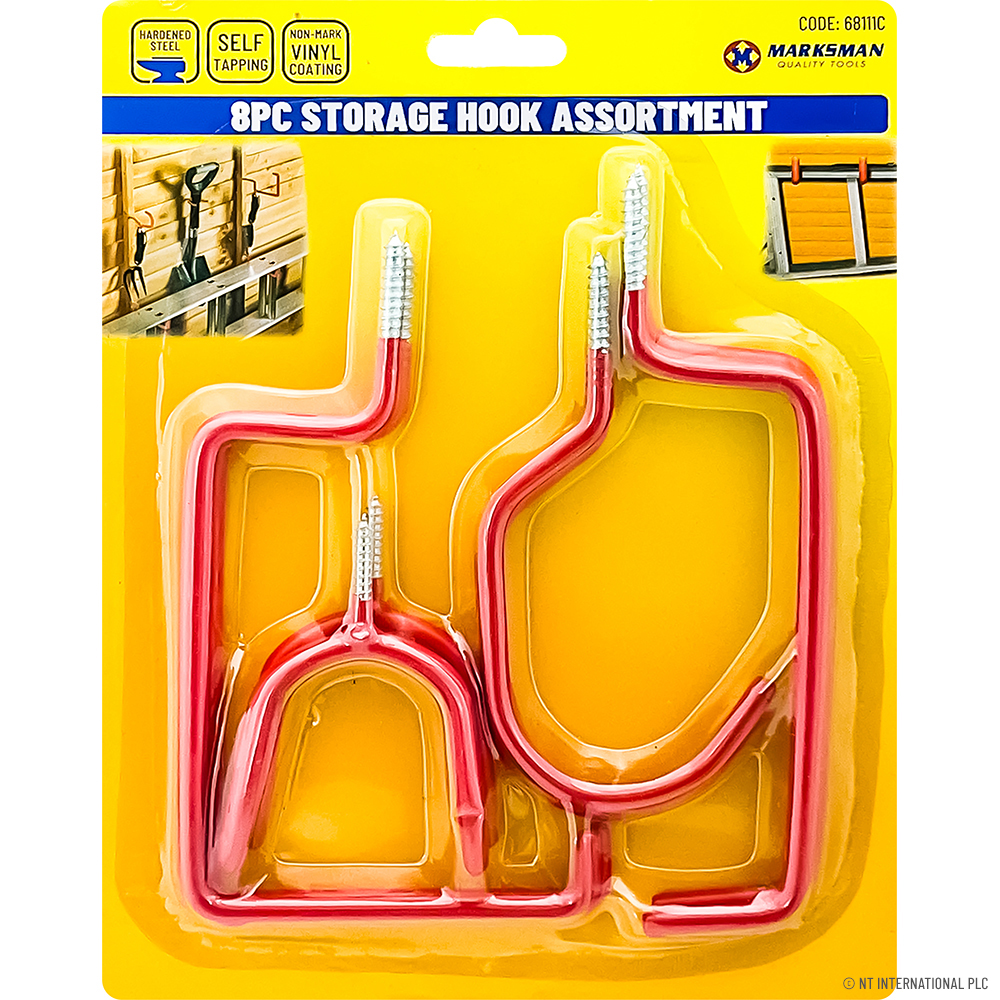 8pc Storage Hook Set - Red Vinyl Coated