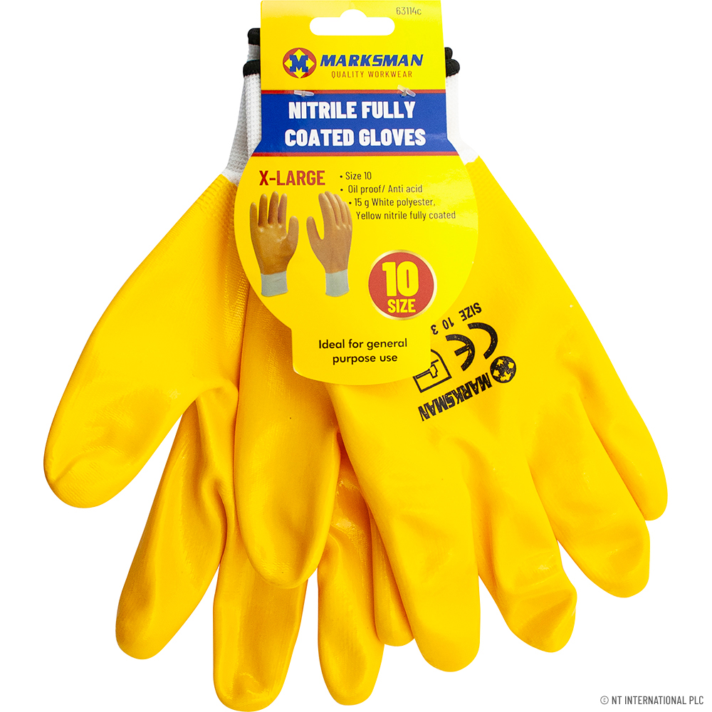 Size 10 Yellow Nitrile Coated Builder Gloves
