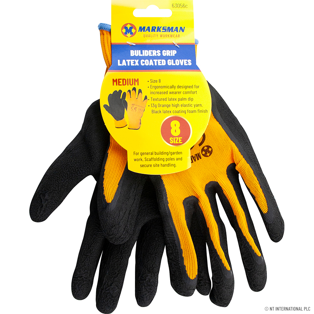 Size 8 Orange / Black Latex Coated Gloves - M