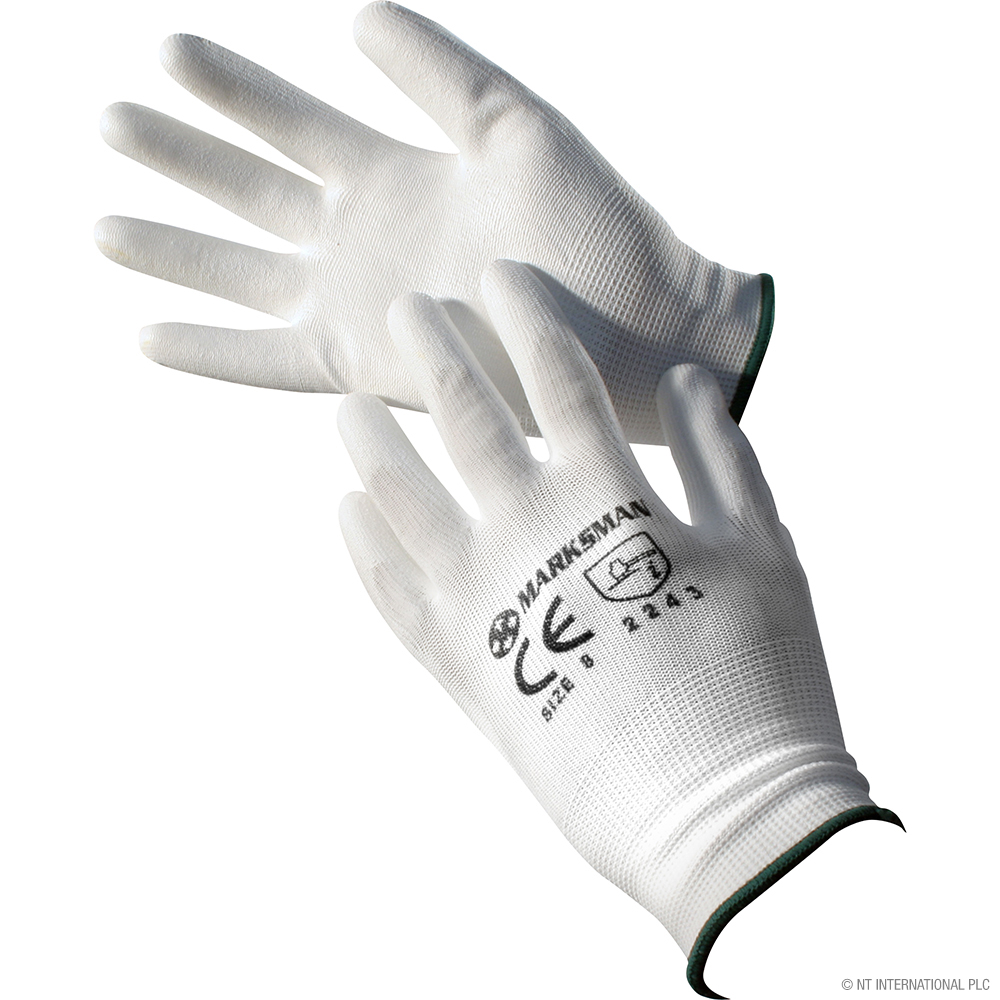 Size 8 White PU Coated Builder Gloves - M