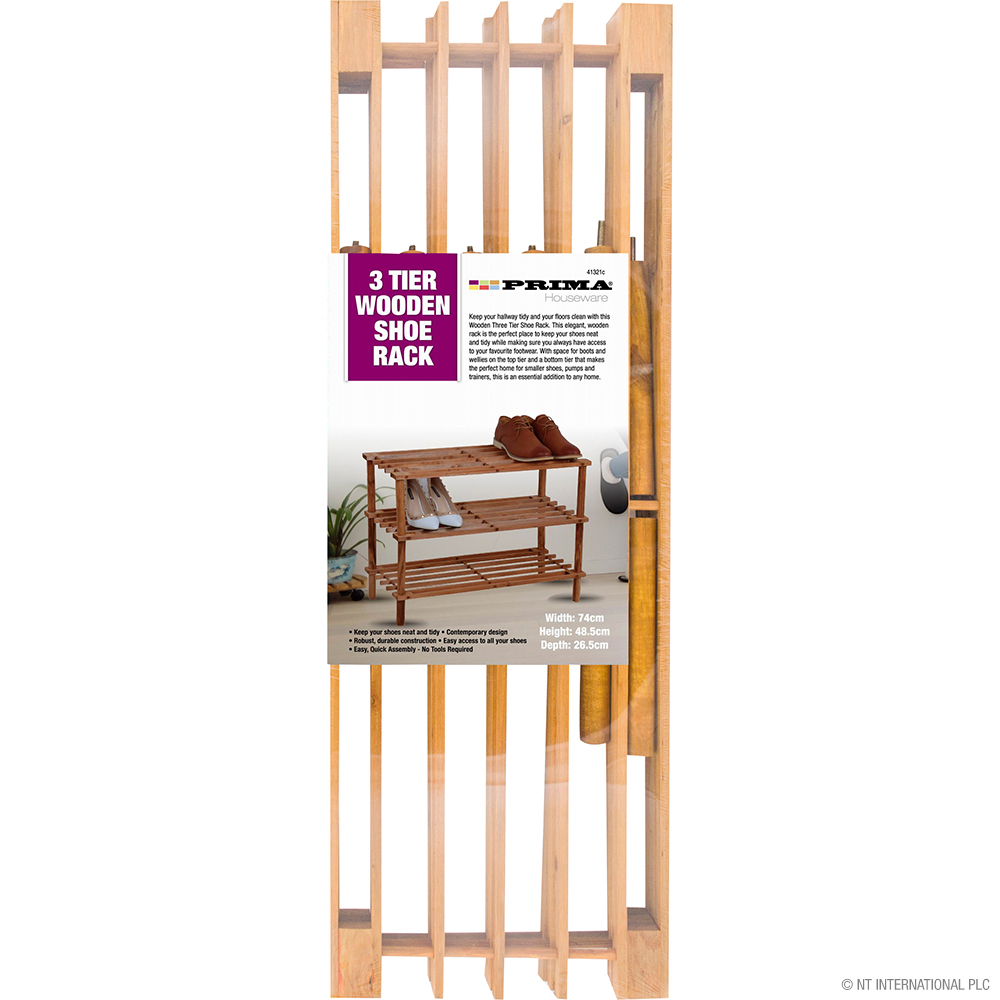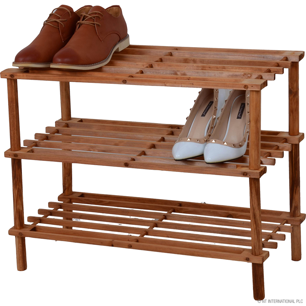 3 Tier Shoe Rack - Walnut 74 x 48.5 x 26.5cm