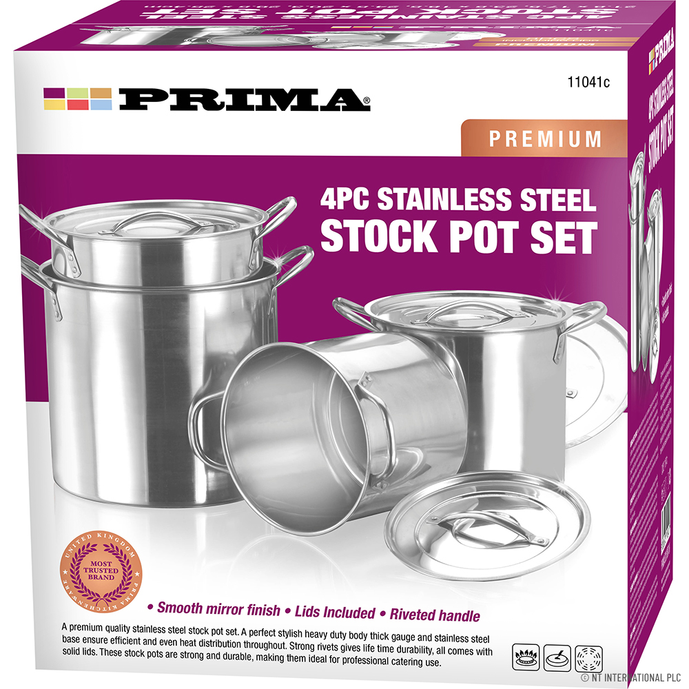 4pc S/S Stock Pot Set - 8, 12, 16 & 20qt