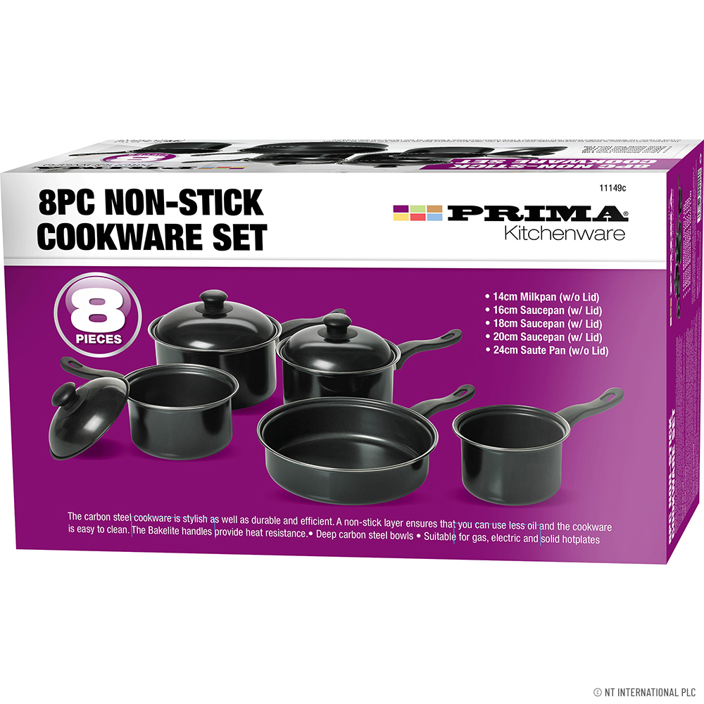 8pc Non- Stick Carbon Steel Saucepan set