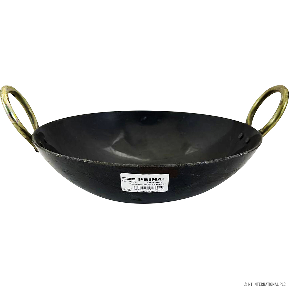 9" Round Bottom Iron Kadahi - Two Handles